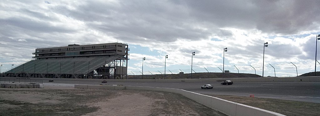 When it was built, it was one of the fastest 1 mile ovals in the world. Seems counter intuitive to me, as the elevation (5,360′) means lower horsepower. It’s a D-shaped oval, with a short road course in the infield. The road course is 1.3 miles long, which includes about three quarters of the speedway.