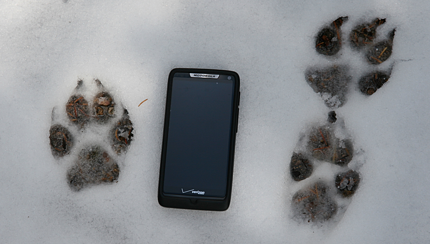Having spotted these nice tracks I began to wonder when the beastie put them down. It had to have been Friday evening. The snow was fairly soft when the prints were made. Many of them were quite well formed. Even at nine thirty the snow on the trail was still quite solid, refrozen overnight. So they had to be put down some time late afternoon or early evening.