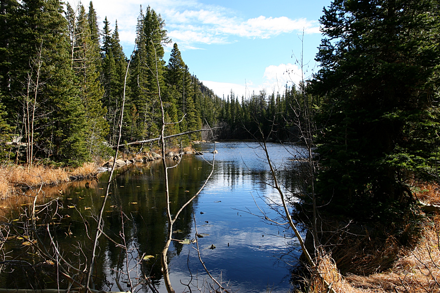 We met at the Sandbeach Lake trailhead shortly after eight. I left my car there and she drove us to the Thunder Lake trailhead. We put boots on the trail before eight thirty. It was sunny and mostly clear; the only clouds were hanging over the Divide. It was also windy. I think I used the phrase “a bit breezy.” What I really meant was more like “it was savagely windy.” But the hike would be through forest the whole way; the only time I expected to deal with the wind was when we were hanging out at the lakes.