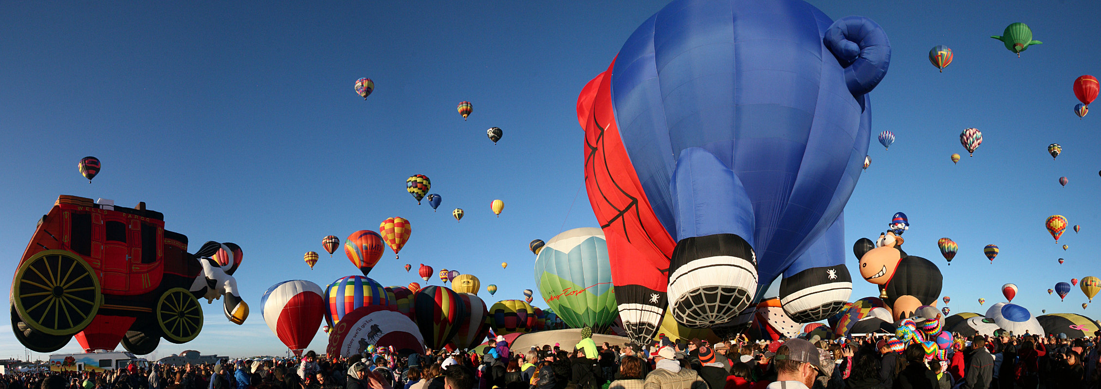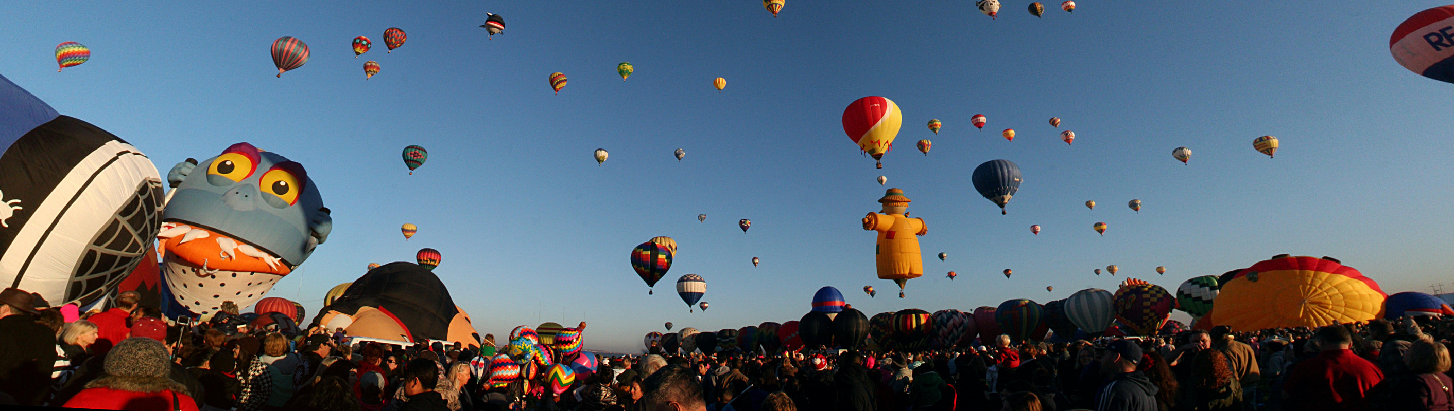 It’s a chaos of motion and noise. Fans driven by gas motors are used to inflate the balloons, gas burners are roaring, and two or three helicopters are circulating counter-clockwise above it all. Over this racket is the buzz of the crowd – tens of thousands of people.