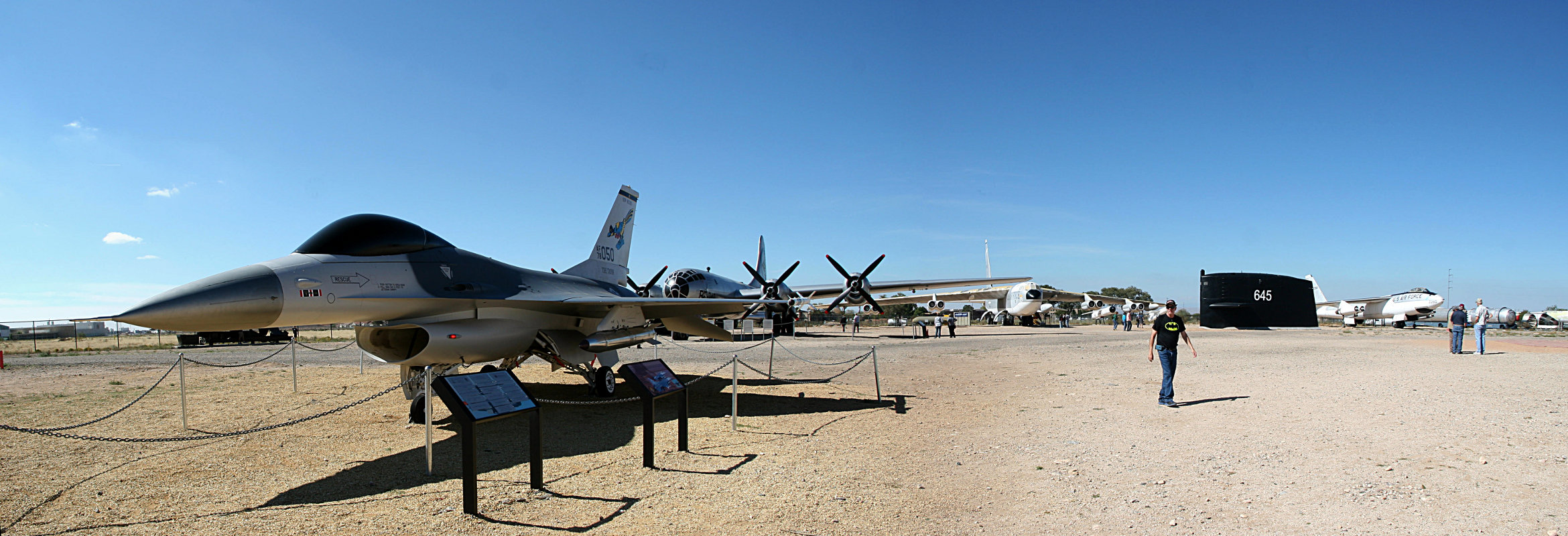 It’s at Kirtland AFB. Well, it used to be there; now it’s nearby. While the museum at Los Alamos was geared to the Manhattan Project, this one is somewhat more general. Its primary focus is on nuclear weapons and the cold war, it includes exhibits on nuclear waste transportation, atomic culture, and energy. Outside they have a large dirt area full of weapons and delivery systems: B-29, B-47, B-52, Ohio class subamarine (!), and a comprehensive collection of bombs and missiles.