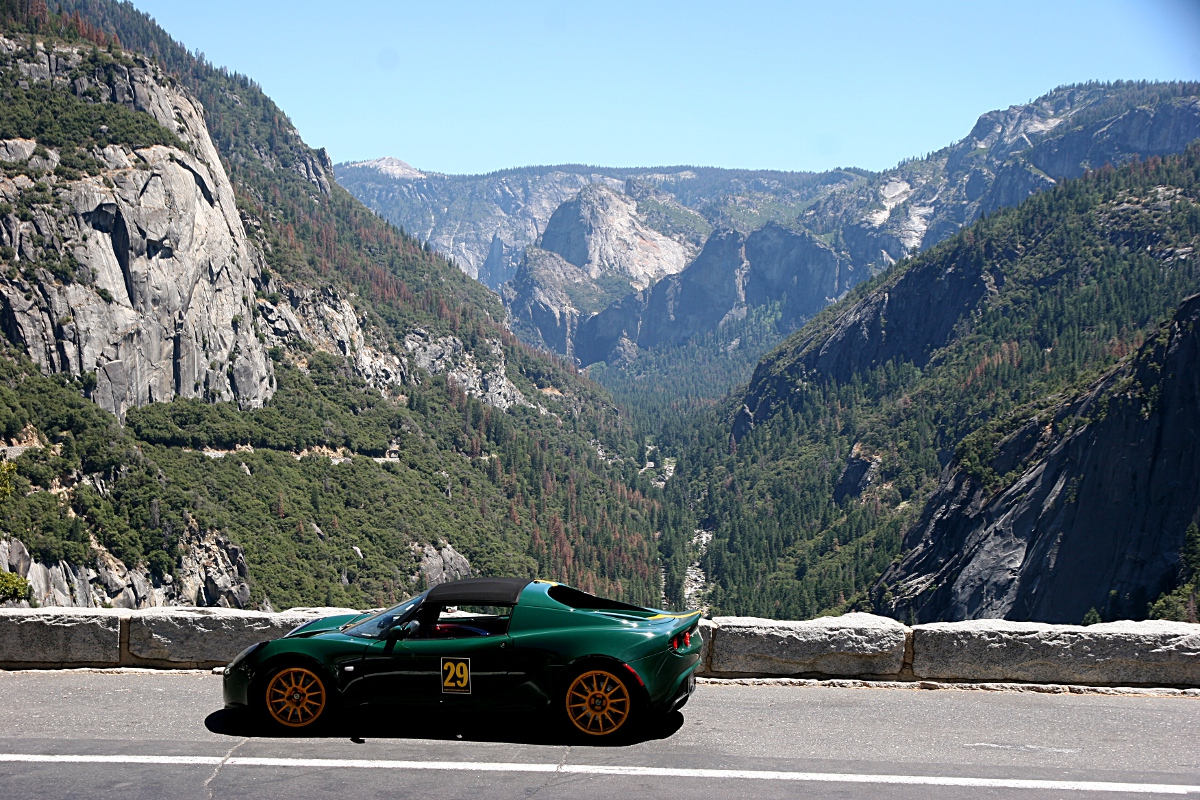 The view here is pretty magnificent. The car normally draws a lot of attention. But here I’m mobbed by comments and questions. Nearly as many people take pictures of the car as they do of the view. I’m used to the car getting such attention. Even when there’s another Elise people like the green and yellow. But I’ve never seen anything like this. I have my snack, snap a few pictures, and am back on my way back downhill into the valley.