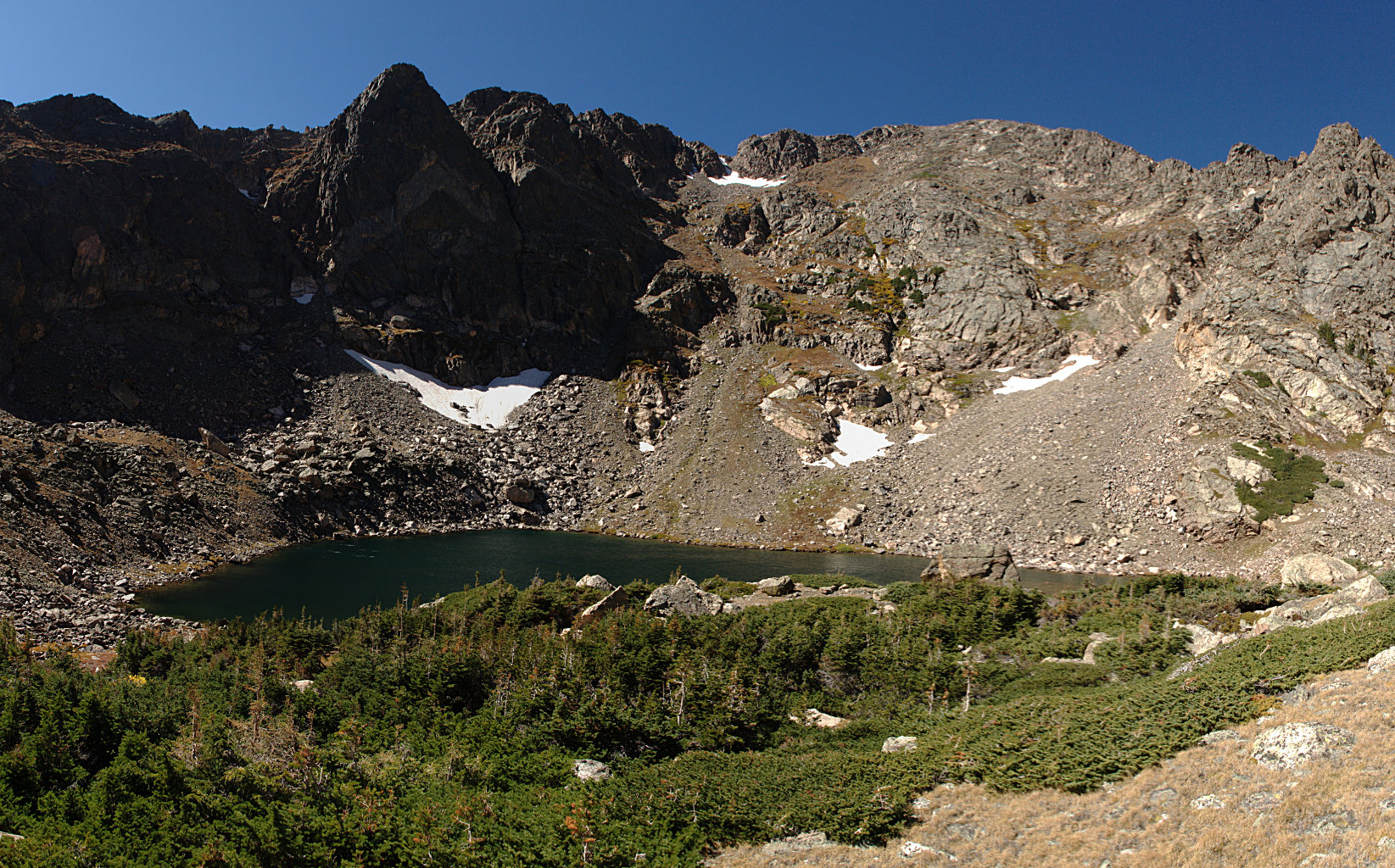 I hit the trail a few minutes before 8am, was at Ypsilon by 10:30, and at Chiquita by 12:15. That last 8/10’s of a mile was a bit slow, but very enjoyable. It only took me an hour to get back to Ypsilon as I went a more direct route. The outlet of Chiquita was interesting – I couldn’t see the stream at all. It flows under a jumble of rocks for a few hundred yards. I could hear the water the whole time, but it wasn’t a visible stream until back in the trees.
