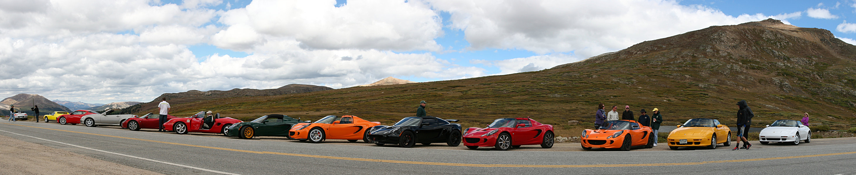 Just after the junction with Colorado Hwy 9, we passed an orange Elise, the first of the Colorado Springs folks. We met the rest at Johnson’s Village, three red cars: a Corvette, a Porsche Boxster, and an Elise. After gassing up and a short break, we continued on to Gunnison for lunch at the Palisades Restaurant, meeting the final member of the group. We were now thirteen cars: 5 Elises, 2 Esprits, an Evora, an Elan, a Birkin, a Corvette, a Boxster, and a Honda S2000.