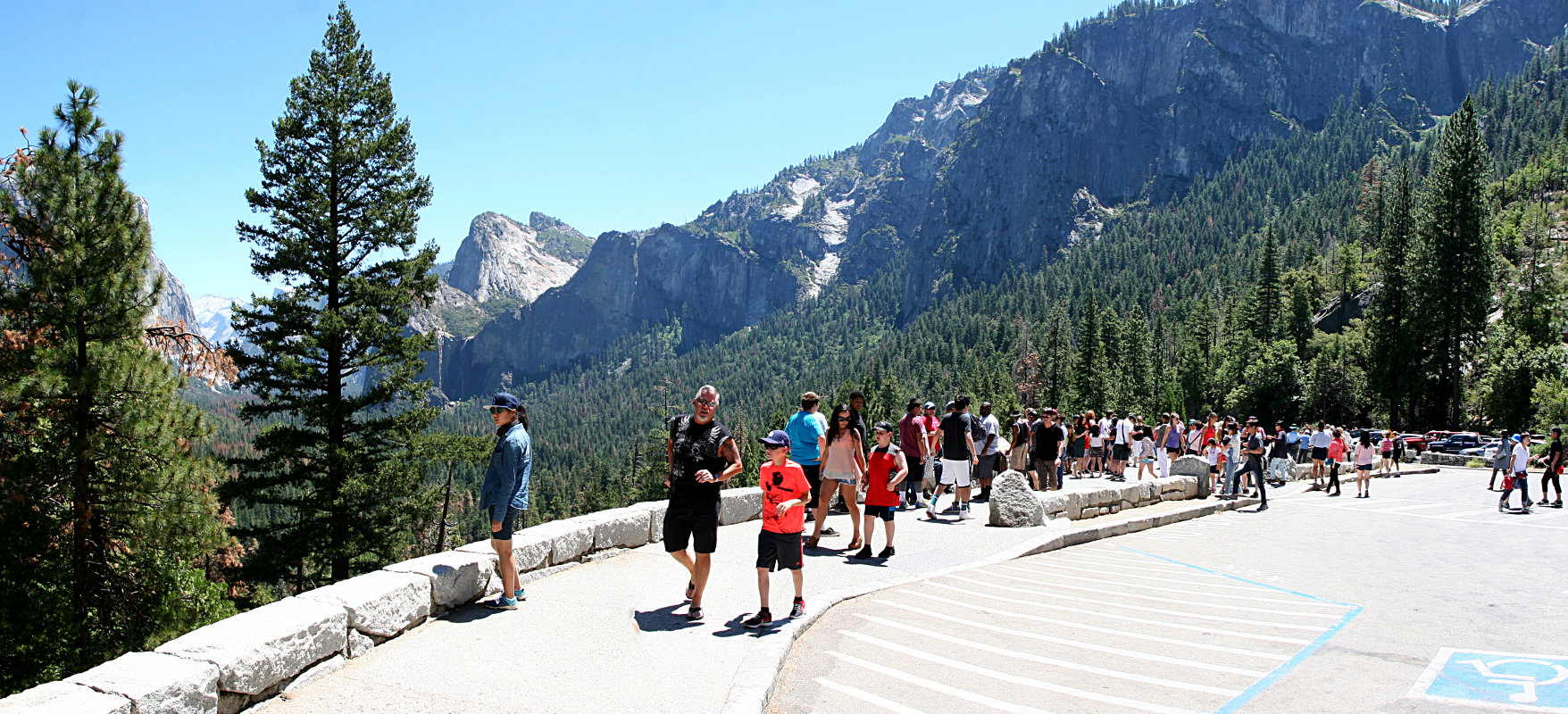 At the gate I ask for the visitors center and am directed to Yosemite Valley, the most crowded part of the park. Here, people have parked cars at every available turn out or wide spot. I find a place to pull over and consult the park map. I see that I passed the turn off for the tunnel view, so I decide to check that out before hitting the visitor center.