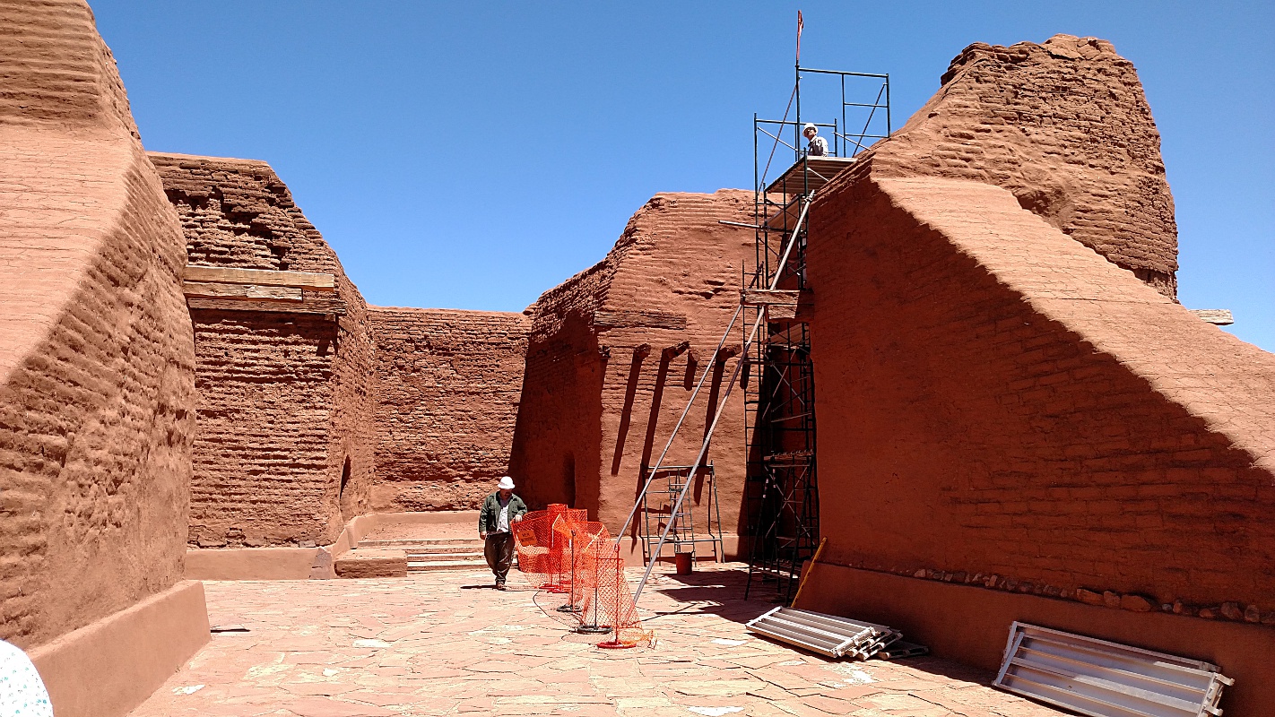The Spanish searched, but didn’t get lost. They returned and, in the early 1600s, built a large mission complex. There was a revolt in 1680 that got rid of the Spaniards for twelve years, but they returned and rebuilt. The population declined until 1838 when the final inhabitants migrated to Jemez pueblo (near where we picnicked yesterday). Today, the Spanish mission is being restored amidst the ruins of the pueblo on the grounds of the Pecos National Historical Park.