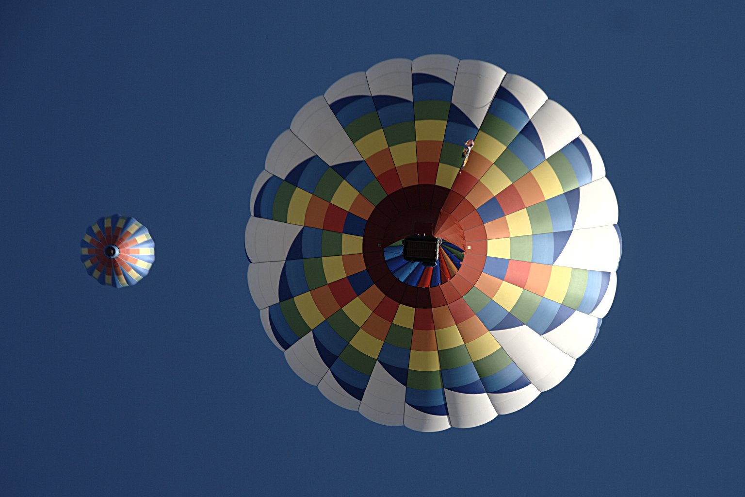 One reason Albuquerque is a great place for a balloon festival is the “Albuquerque Box”. At low elevations, winds tend to blow from south to north. At higher elevations, winds are north to south. This allows some balloons to take off, fly several miles south, gain altitude, fly several miles north of the field, descend, fly back to the field and land. Some pilots opt to gain all their altitude at once and do only half the box. Of course, they can’t steer the balloons, so overall they tended to scatter widely.