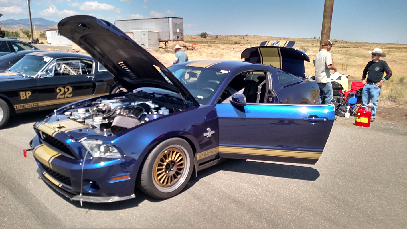 The other was a recent Mustang. Metallic blue, with gold stripes, a GT-500 Super Snake. He just had it dyno’d – seven hundred ninety something horsepower at the flywheel. He thinks it’s capable of 180mph and says that to get it to 200mph it would cost an additional $20,000. He was running in the green group and we were never on the track together.