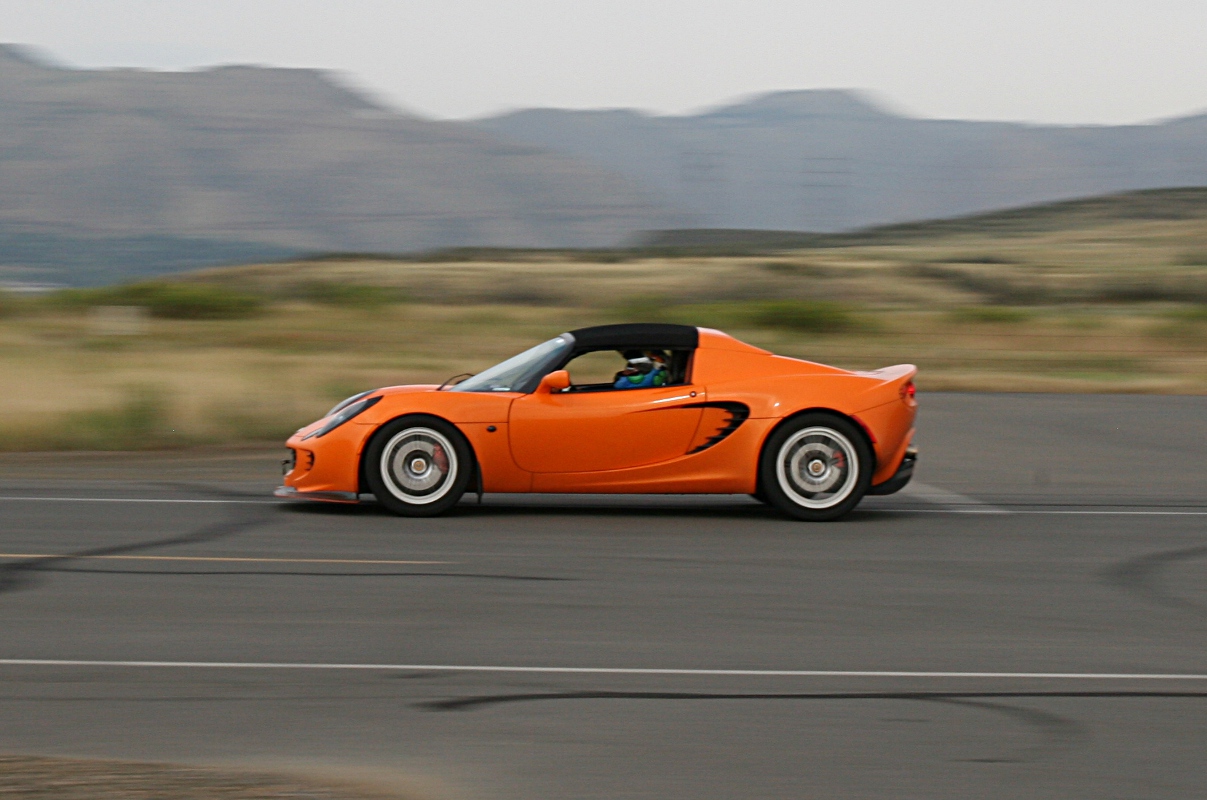 I ran three or four laps behind him. He could pull away on the straights but I’d catch right back up in the turns. Although he wasn’t holding me up, he waved me by. Then we ran three or four laps with him following me. Eventually, I put him some distance behind me, but that was probably due to traffic more than any speed differential. He had more than double the horsepower of the Elise, but said he sometimes had a bit of trouble putting the power down if he tried to get on it too early when exiting a corner. He also told me he tried once or twice to brake as late as me. No can do. As expected, I was able to brake later than any other car in the red group.
