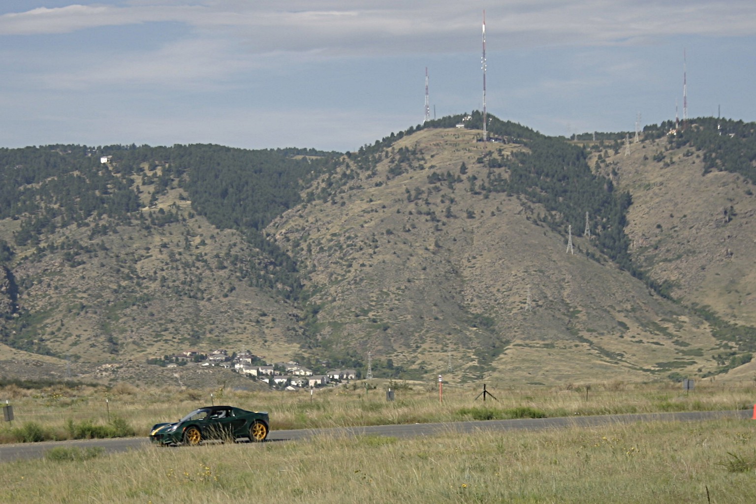 Although I’ll call it a track, the Colorado State Patrol facility on South Table Mountain in Golden isn’t really a race track. It’s a training facility for the CSP. The track is really more like a road. It is slightly crowned and even as a center strip painted on it. Drivers should be careful not to go off here. Not only is the pavement often three or four inches above the surrounding ground, there are boulders hidden in the weeds. Hitting one of these will ruin your day as well as your car.