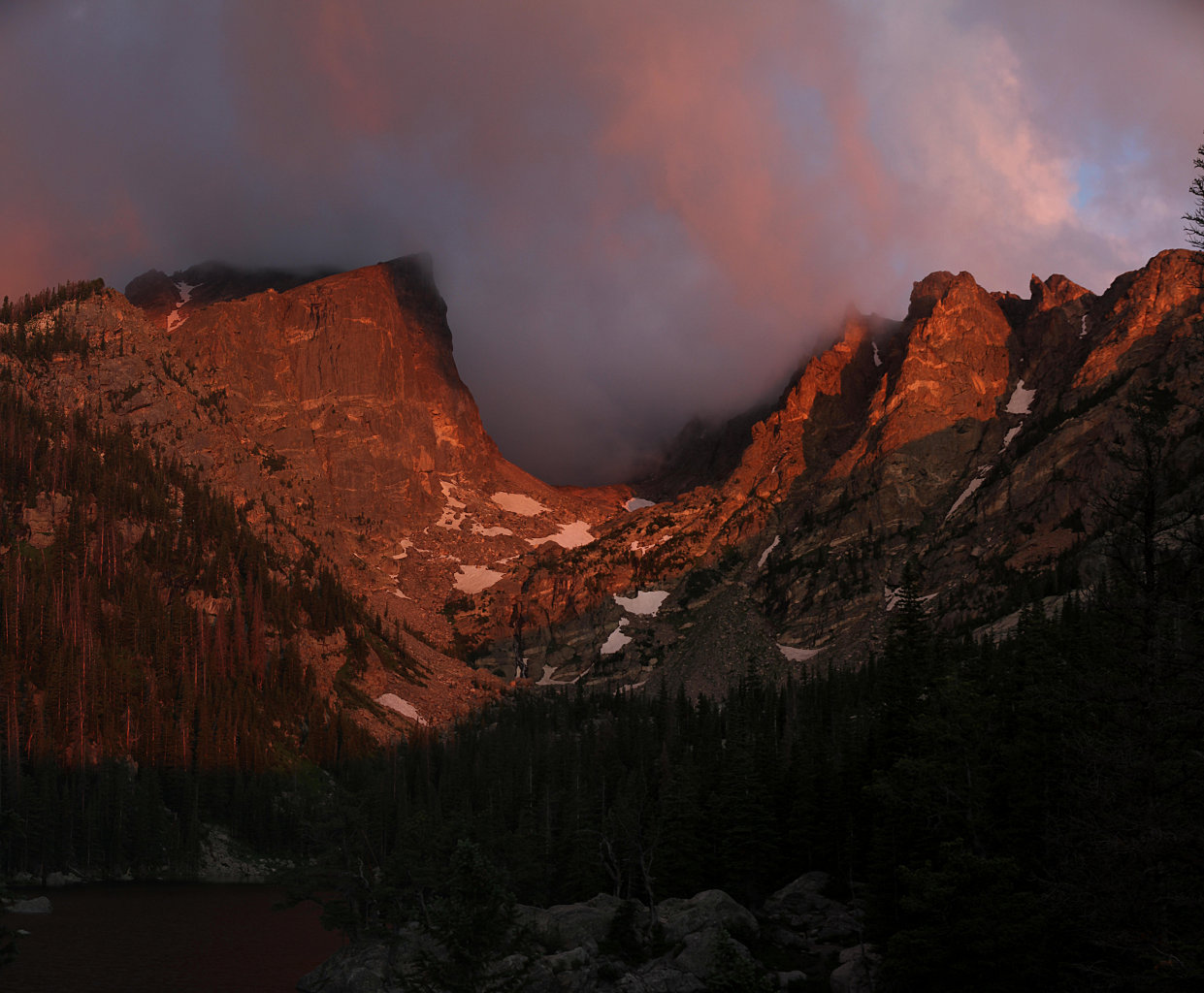 Which, today, means getting my butt out of bed before 3 and driving a couple of hours, then hiking a mile in the dark, all so we could be at Dream Lake for sunrise; to see Dream Lake and Hallett Peak bathed in the colors of the rising sun.