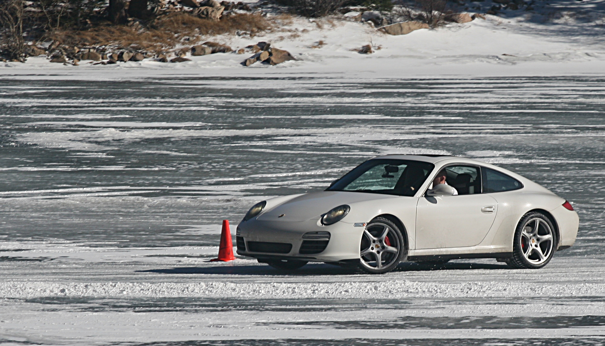 It was my turn on the ice before Jerry arrived so I made the first run without him. I figured once he arrived we’d do the skid pad and then the second run. Unfortunately, by then they’d collected the cones from the skid pad. Then they decided to change the course, making it a bit longer. It was still quite a bit shorter than last year, but it looked like the ice on the east side of the lake was quite rough, so it’s probably just as well.