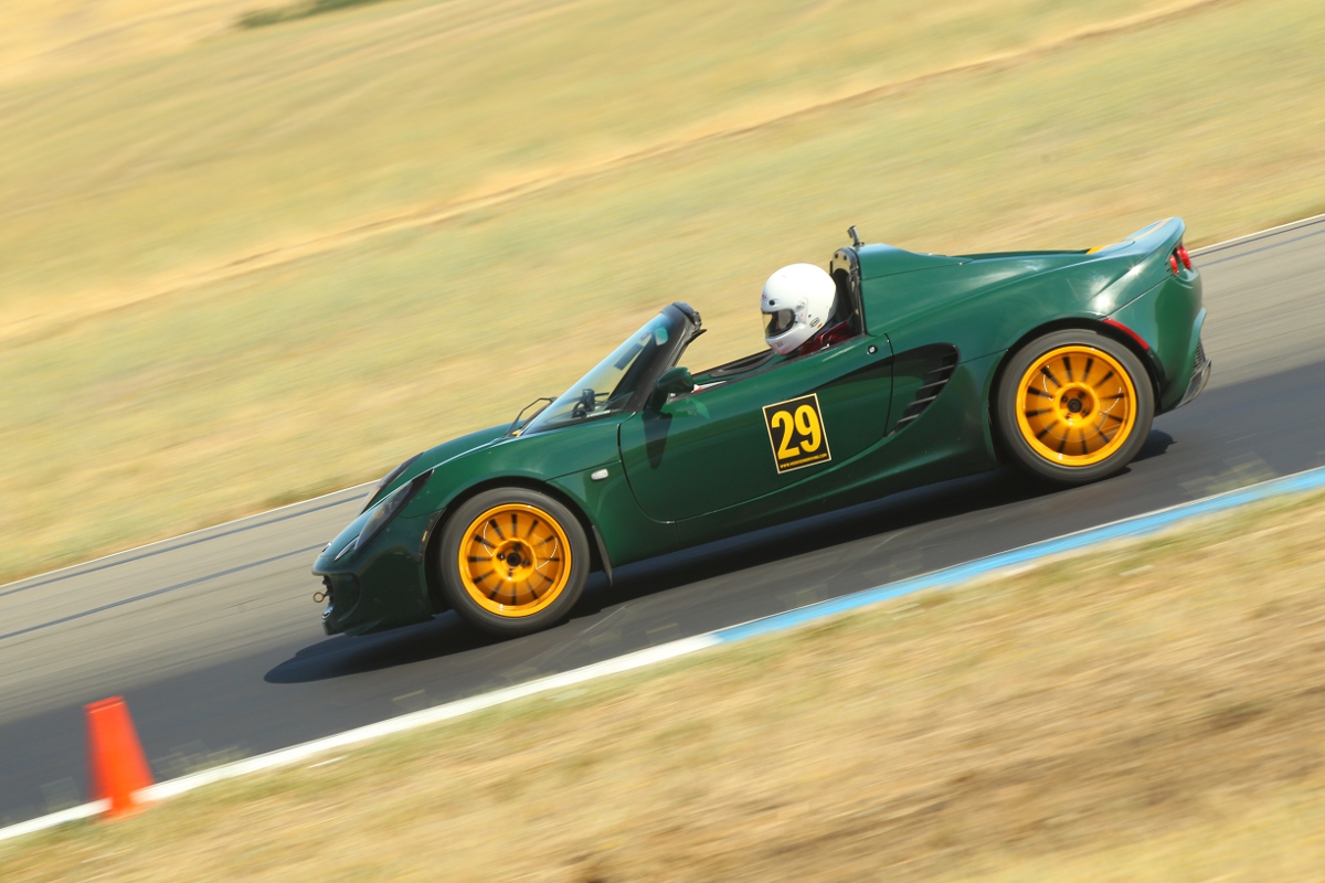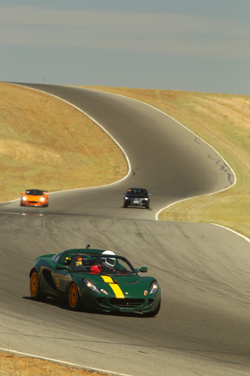 I make it a point to meet the other Lotus drivers at these events. Today we had two. Tony was there running his S1 Elise. He says it’s not street legal. It’s a race prepared car from the factory with roll bar, fire suppression, fuel and electrical cutoffs. It’s Lotus Racing Green. It’s left hand drive, which surprised me. Tony says it was sold in the French market. Rover engine, very similar in power to the Toyota in the Federal Elise.