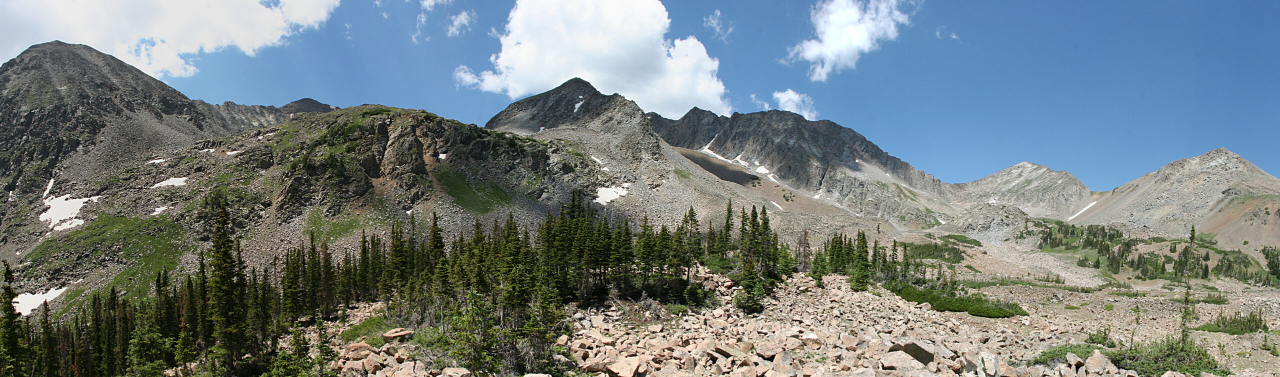 The slopes of Howard Mountain and Mount Cirrus rise steeply 1400′ above the lake. You guessed it: talus everywhere. The rocks these mountains are made of aren’t the giant granite slabs you see above Black Lake, for example. The rocks on Howard and Cirrus are fractured and full of cracks running in all directions. The freeze-thaw cycle undoubtedly keeps a significant amount of rock falling, endlessly adding to the piles of talus.