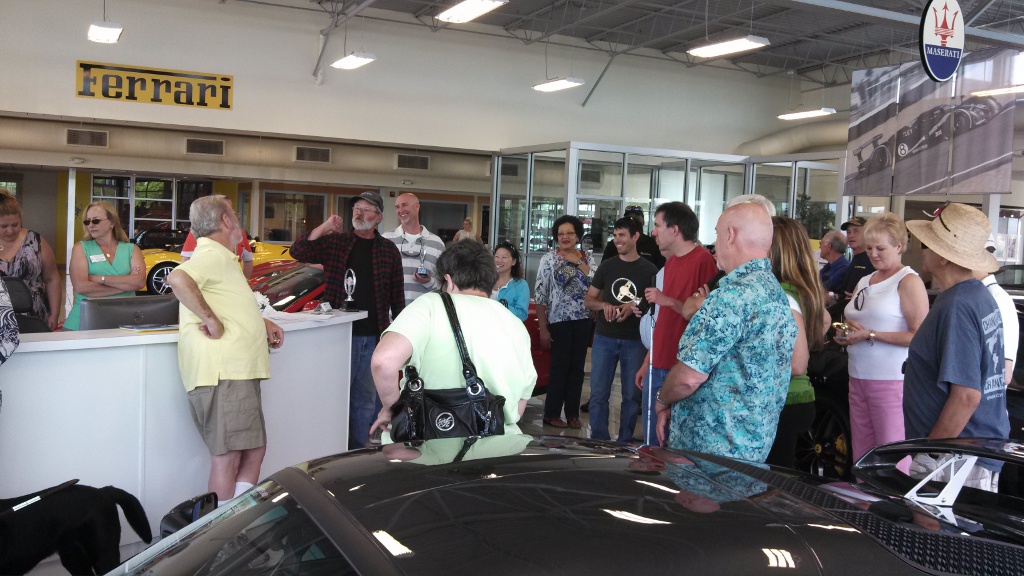 The rally ended at Ferrari of Denver, one of the many sponsors of the rally. There we had a light lunch of fruit and small sandwiches. When we checked in with Skip, he gave us a trivia quiz to use in case we needed to break a tie. I think we got two or three of the fifteen questions correct. As a Lotus owner, I should have gotten another one – what does ACBC stand for. I didn’t know the A.