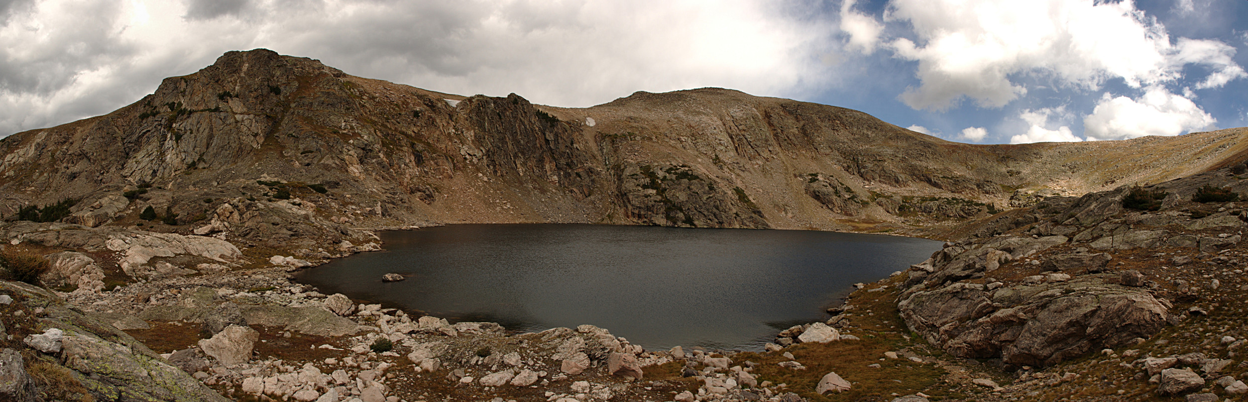 Not long after reaching the campsite, I found a trail. I wasn’t sure whether it was the shortcut or the main trail, so I kept going west. When I found a pile of horse dung I knew I was on the main trail, as no livestock is allowed on the shortcut. Except llamas, and I doubted llama dung looked like horse dung. So I turned around. A few hundred yards down the trail I found a sign for the Siskin campsite. Had I known it wasn’t on the shortcut but on the Thunder Lake trail, I have no doubt I’d have found the lakes. I was probably just a few yards east of them at some point.